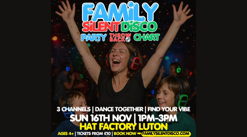 Nov 16 1:00 pm - 3:00 pm Family Silent Disco Hat Factory Arts Centre The Hat Factory Arts Centre, Luton Event Details Get Directions